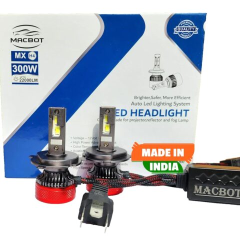 MACBOT H4/H19 Type LED Headlight Bulb 300 Watt MX-H4, with 2-Year Replacement Warranty - Made in India for Cars (150 Watt Each Bulb) Super Bright White Light, Easy Installation,Durable